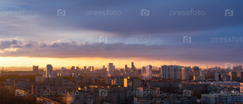 Рассветные облака над мегаполисом раннего заката