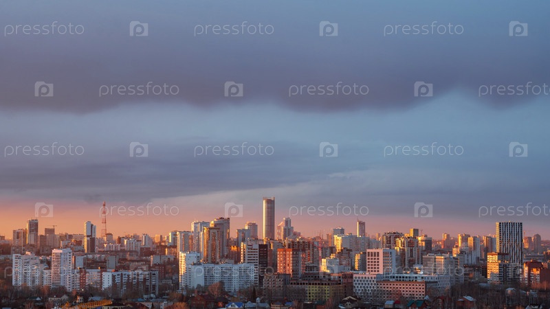 Рассветные облака над мегаполисом раннего заката в Екатеринбурге