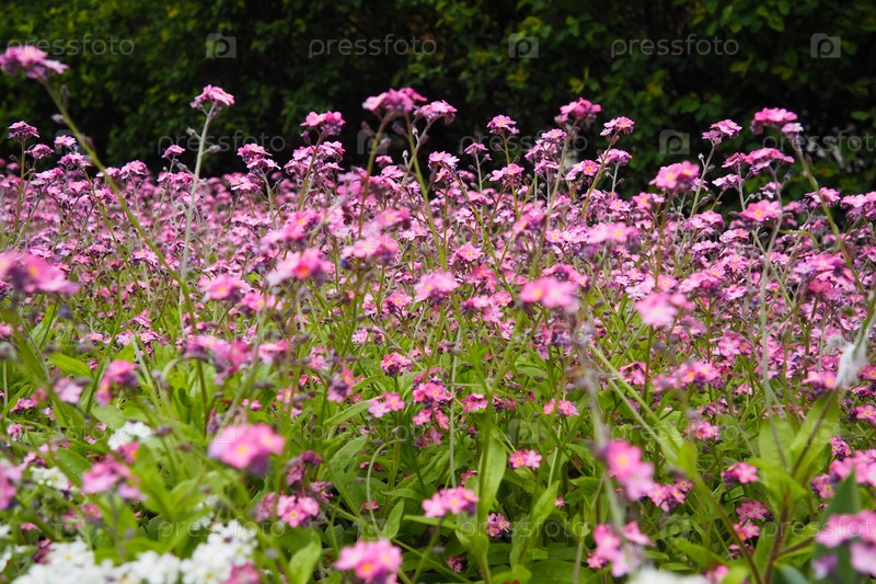 Незабудки.Myosotis цветущие розовые растения семейства Boraginaceae.Незабудки или скорпионные травы.Цветы Myosotis alpestris для украшения газонов и клумб.Садовый пейзаж