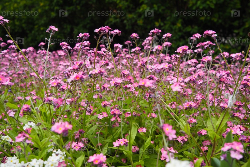 Незабудки.Myosotis цветущие розовые растения семейства Boraginaceae.Незабудки или скорпионные травы.Цветы Myosotis alpestris для украшения газонов и клумб.Садовый пейзаж