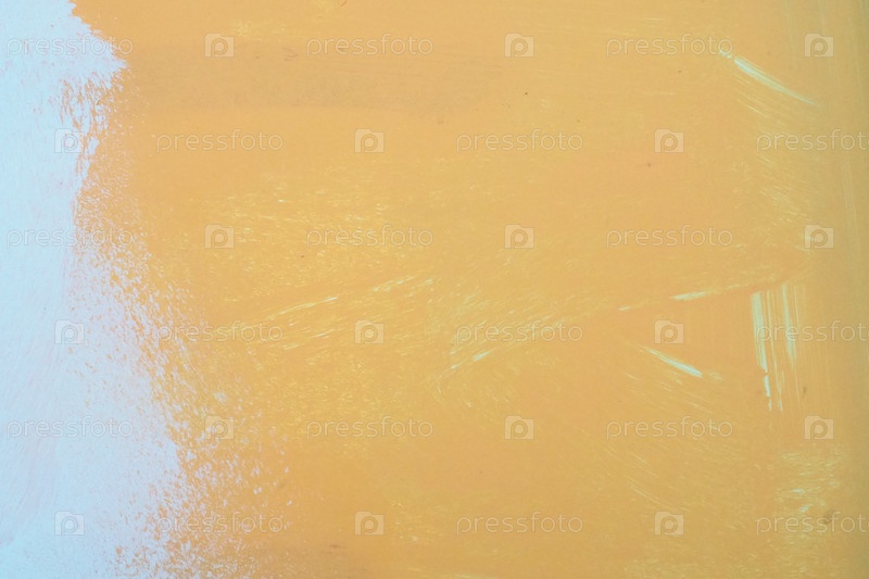 Оранжевая белая картина маслом на оштукатуренной стене. Текстура масляной краски с мазками кисти и мастихина. Концепция современного искусства. Горизонтальный фрагмент