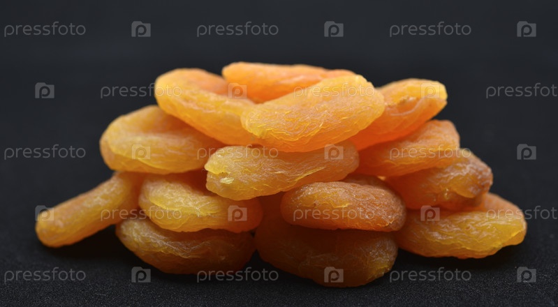 Куча кураги на черном фоне. Вкусные сухофрукты