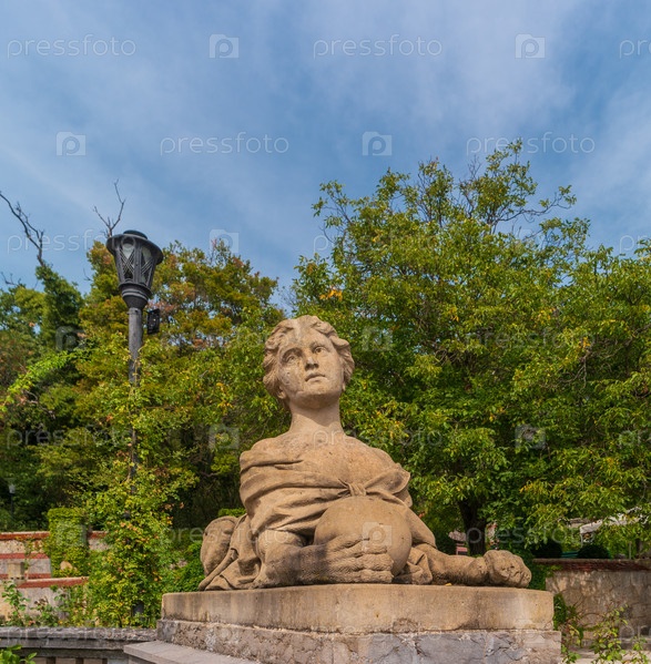 Скульптура Сфинкса в парке Массандровского дворца. Ялта, Южный берег Крыма, Россия