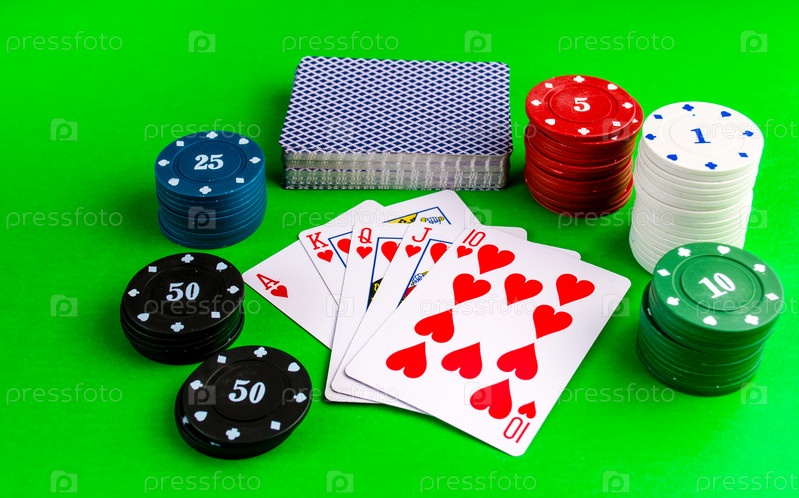 Покер, флеш-рояль на зеленом столе