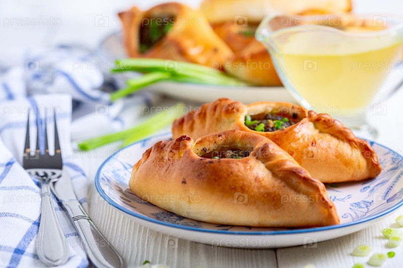 Два открытых пирога с пикантной начинкой (растегай). Русская кухня