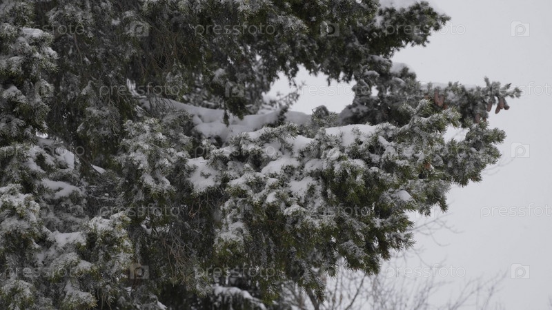 Зимний лес во время снегопада, замедленная съемка