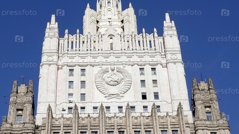 МОСКВА, РОССИЯ - 27 июля 2019 года: Главное здание Министерства иностранных дел является одним из семи знаменитых небоскребов, построенных в сталинском стиле, 27 июля 2019 года в Москве, Россия