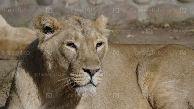Портрет львицы, греющейся на теплом солнце после обеда
