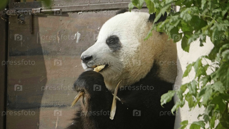 Панда ест сочные бамбуковые ветки на обед, панда ест сочные бамбуковые ветки на обед