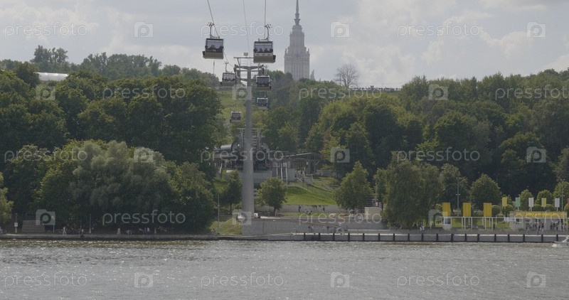 Москва, Россия - 25 июля 2019 г.: Московская канатная дорога в Лужниках