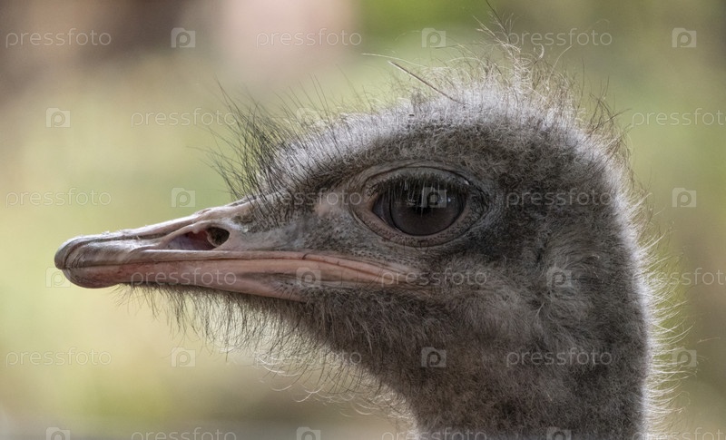 Страус крупным планом осторожно смотрит вокруг
