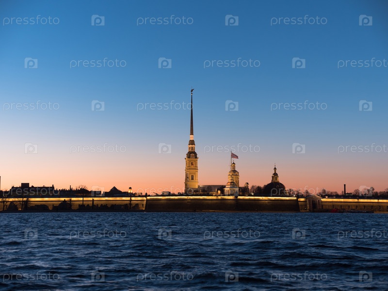 Ночная Петропавловская крепость - оригинальная цитадель Санкт-Петербурга, Россия
