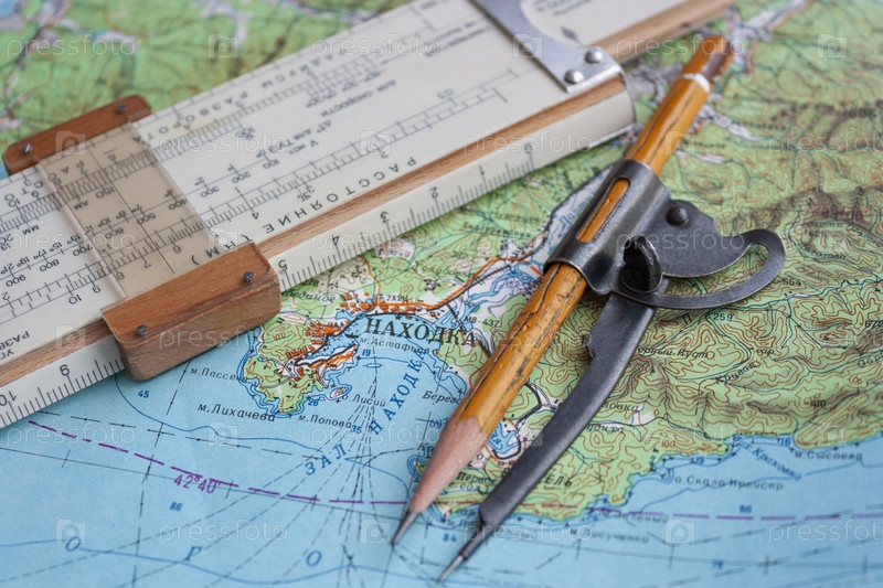 Карта и навигационные приборы для прокладывания пути