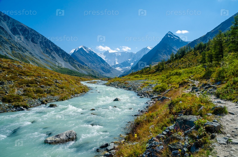 Течение реки Аккем, гора Белуха вдали
