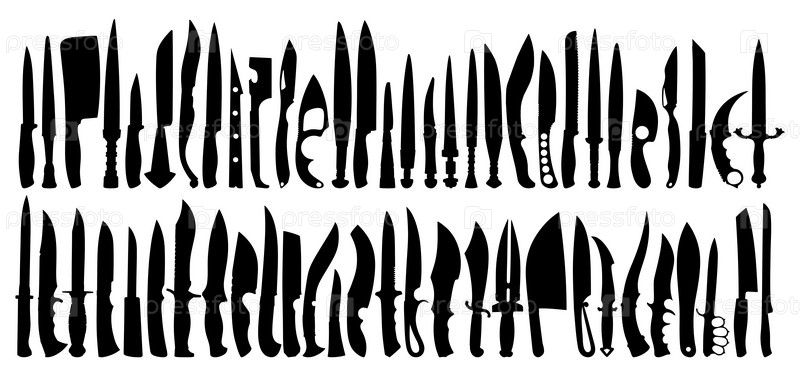 Набор силуэтов кухонных и охотничьих ножей