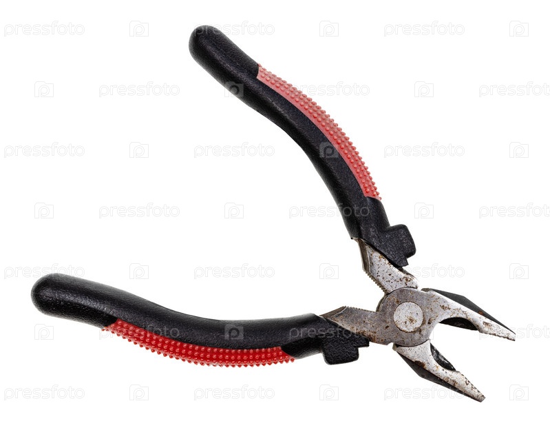 Открытые старые плоскогубцы с красной и черной резиновой ручкой