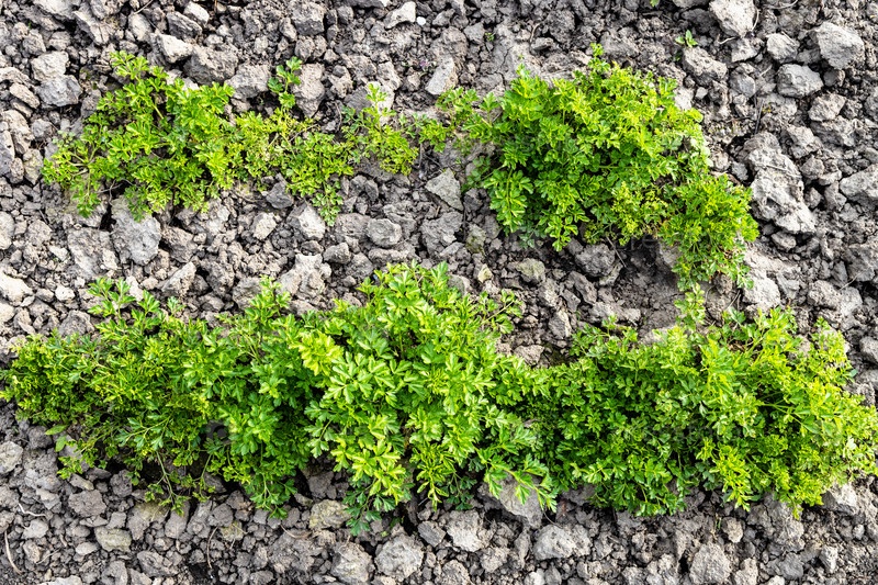 Вид сверху на две кровати с зеленой свежей петрушкой
