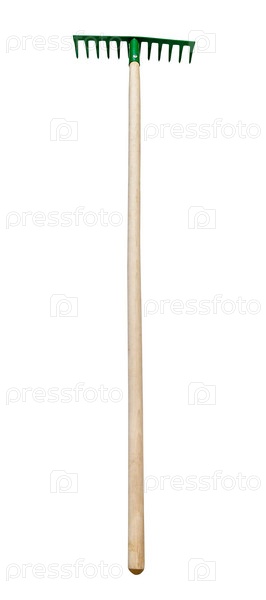 Стальные грабли с направленными вниз зубьями и деревянной ручкой