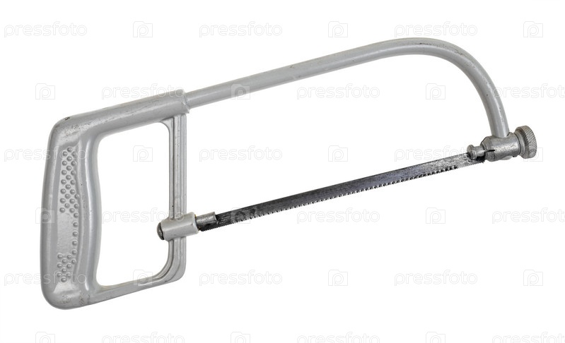 Использованная серая ножовка по металлу, изолированная на белом