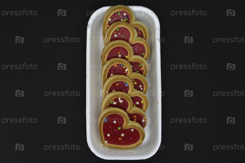 Печенье "Красное сердце" в упаковке. Сладкое печенье с сердцем