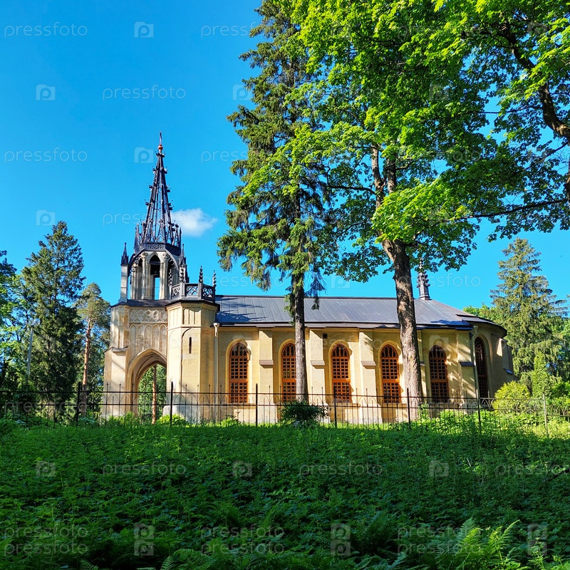 Церковь Петра и Павла в Шуваловском парке, Санкт-Петербург. Неоготическая архитектура, православная церковь