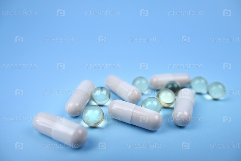 Ассорти из таблеток, таблеток и капсул фармацевтической медицины на деревянной ложке