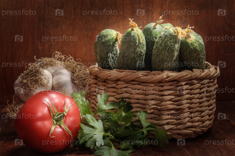 Свежие овощи на темном деревянном фоне в деревенском стиле