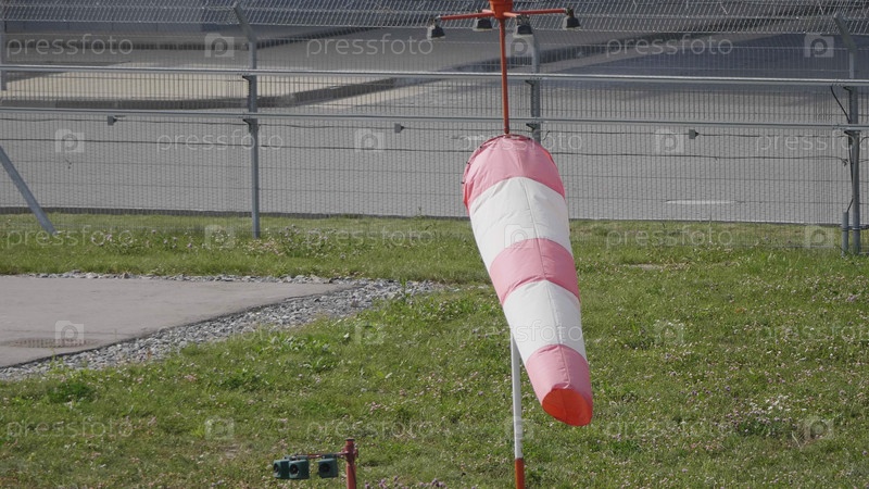 Потертый ветроуказатель при умеренном ветре на фоне голубого неба