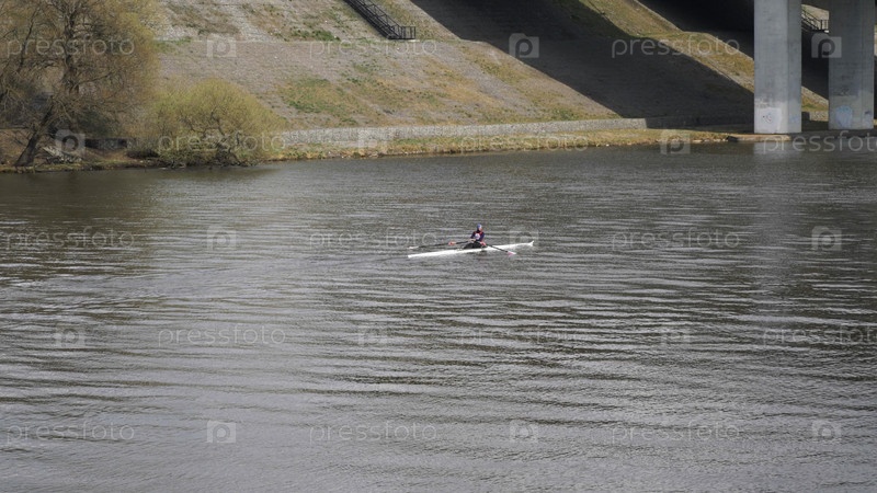 МОСКВА, РОССИЯ, 10 июня 2019 г.: спортсмены гребут во время гонки 10 июня 2019 г. в Москве, Россия