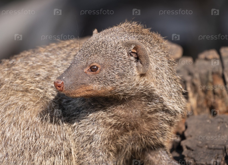 Полосатый мангуст (mungos mungo) отдыхает на солнце