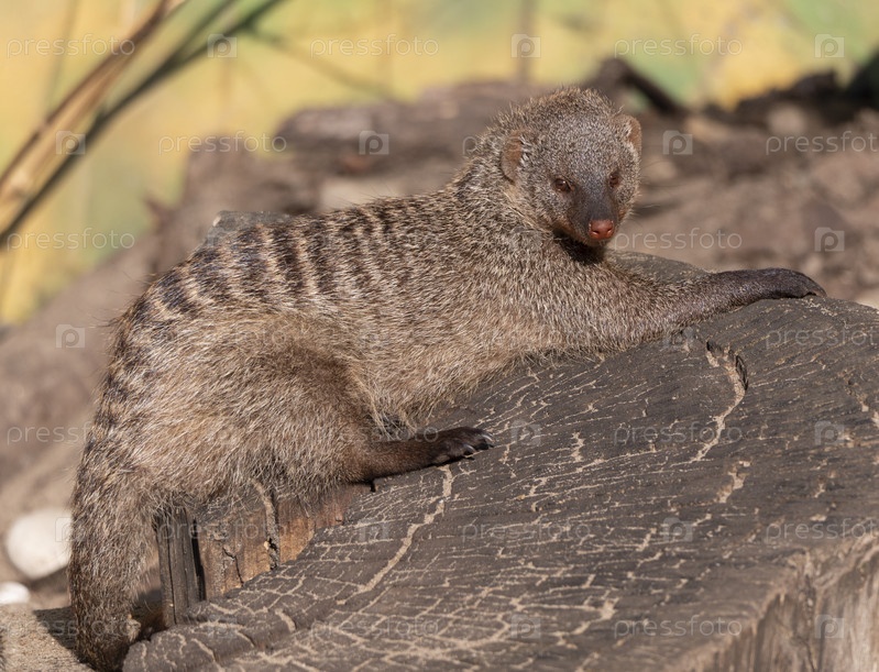 Полосатый мангуст (mungos mungo) отдыхает на солнце
