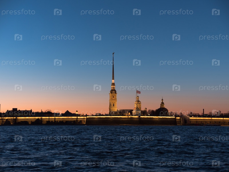 Ночная Петропавловская крепость - оригинальная цитадель Санкт-Петербурга, Россия