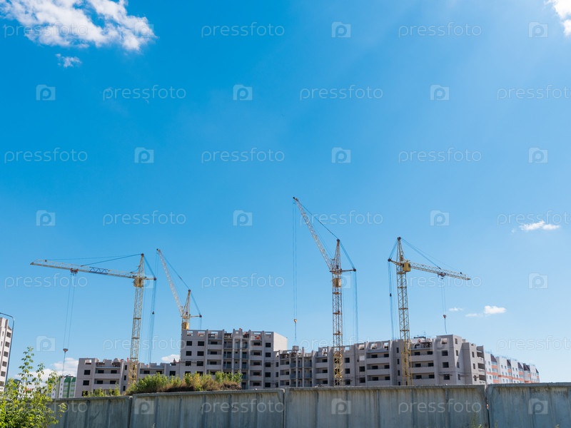 Строительная площадка с множеством кранов на фоне неба