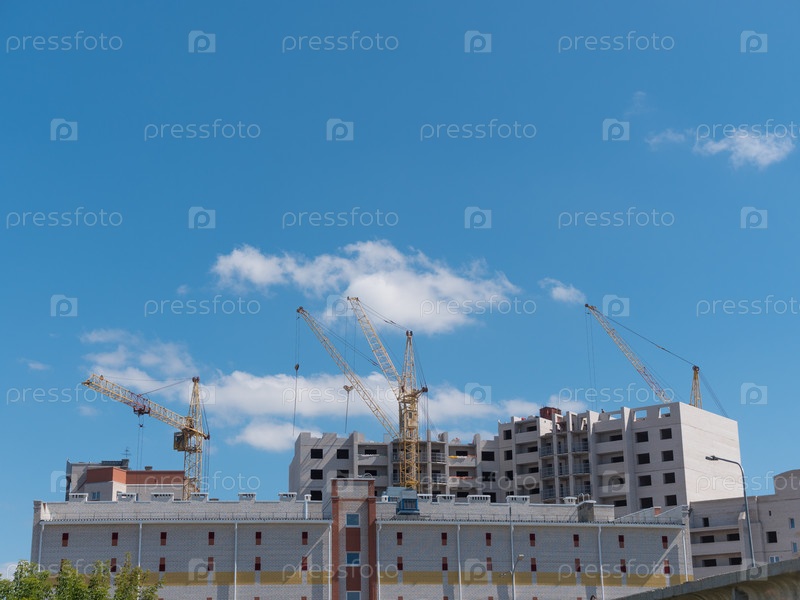 Строительная площадка с множеством кранов на фоне неба