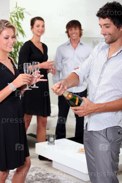 Друзья пьют шампанское