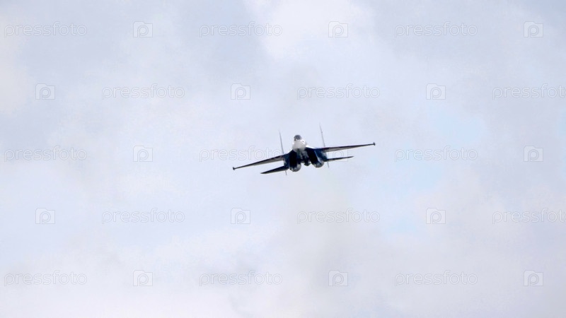 Москва Россия Аэродром Жуковский 25 июля 2021 года: Пилотажные группы Русские Витязи на самолетах Су-35 Международного аэрокосмического салона МАКС-2021