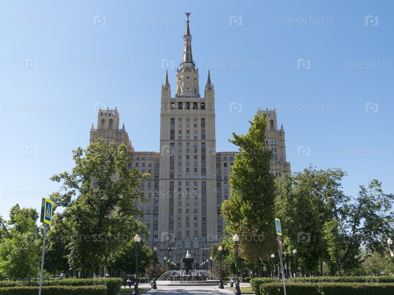 Вид на высотный знаменитый сталинский небоскреб на Кудринской площади, Москва, Россия