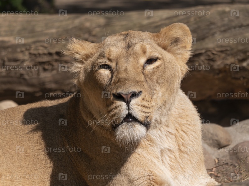 Портрет львицы, греющейся на теплом солнце после обеда
