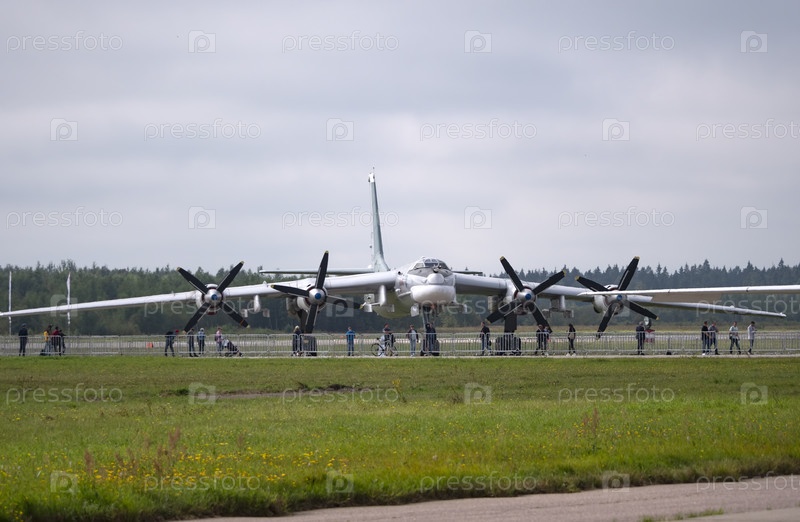 КУБИНКА, РОССИЯ - 25 августа 2020 г.: Международный военно-технический форум "АРМИЯ-2020" на авиабазе Кубинка. Ту-95 — большой четырехмоторный турбовинтовой стратегический бомбардировщик и ракетная платформа