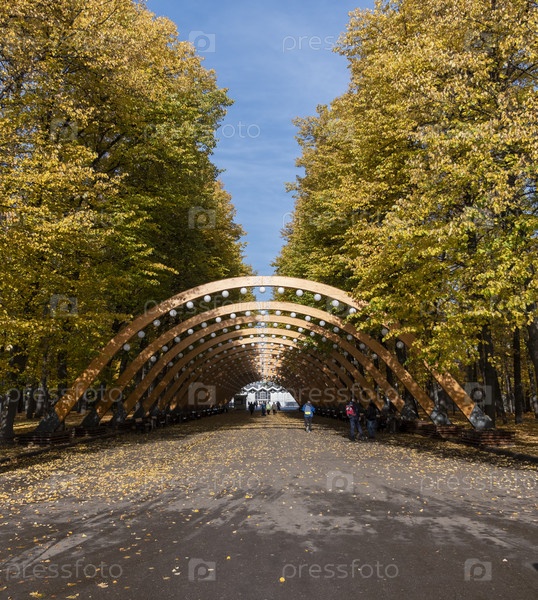 Парк Сокольники, деревянная арка солнечного осеннего дня