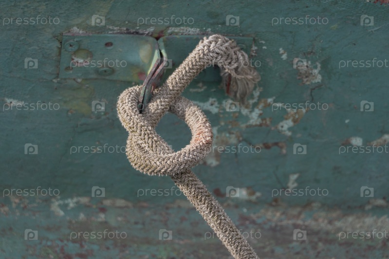 Парусная лодка, привязанная веревкой, завязанной морским узлом