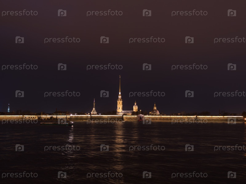 Ночная Петропавловская крепость - оригинальная цитадель Санкт-Петербурга, Россия