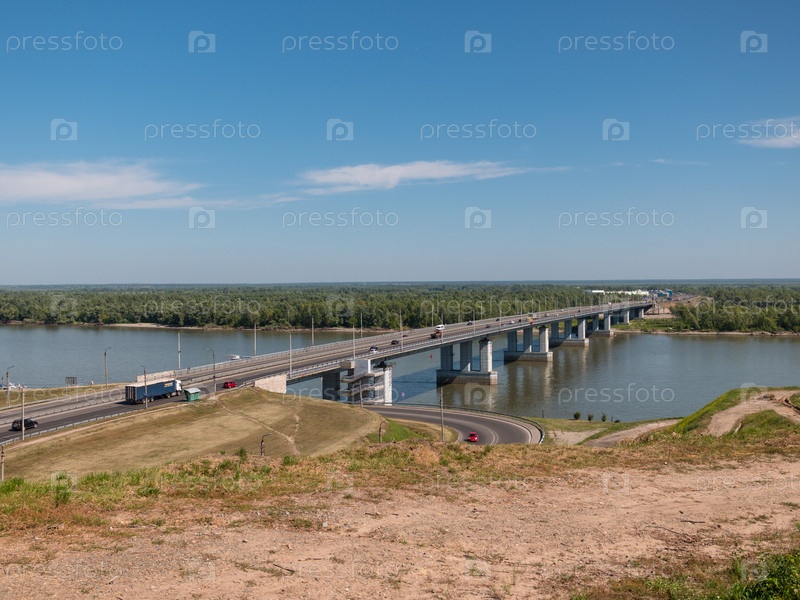 Мост с автомобилями на въезде в Барнаул Россия