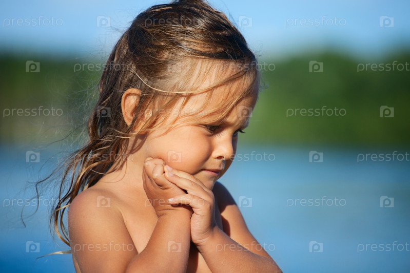 Портрет счастливой маленькой девочки на открытом воздухе, летнее время