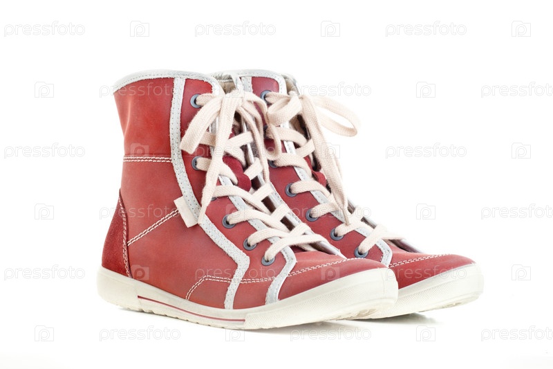 Пара новых красных кроссовок