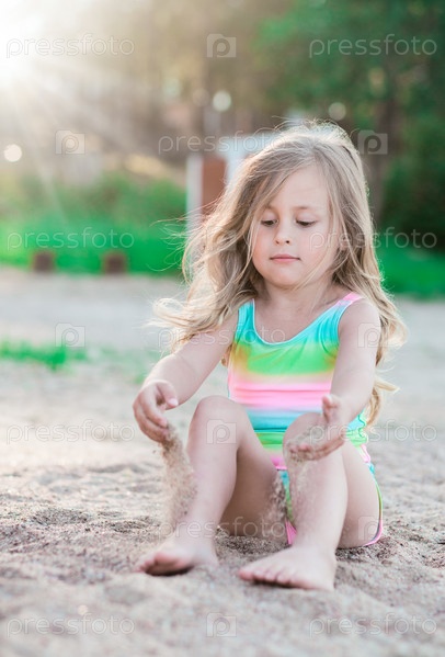 Маленькая девочка играет с песком