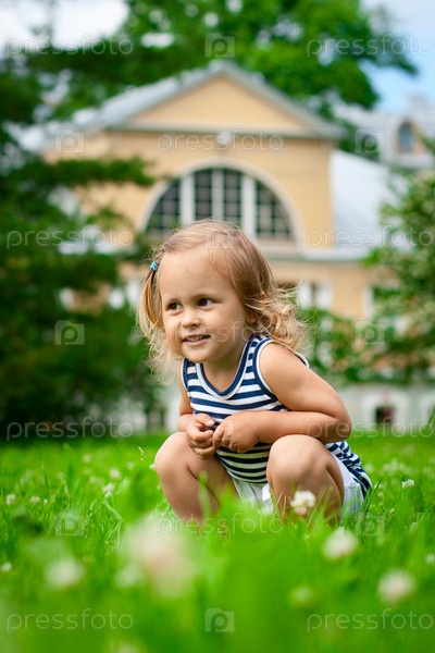 Милый ребенок сидит в траве