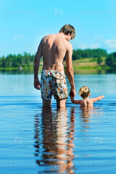 Отец с дочерью собираются купаться