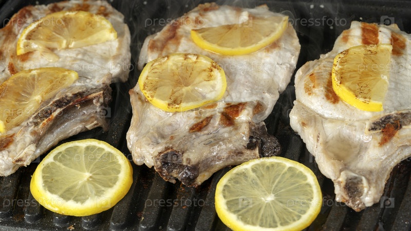 Свиные стейки на гриле с лимоном, концепция меню ресторана и рецепты