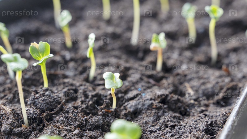 Саженцы дыни в лотке, проросшие саженцы высаживают на черный лоток в теплице